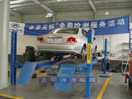 正在進(jìn)行四輪定位檢測(cè)的SONATA