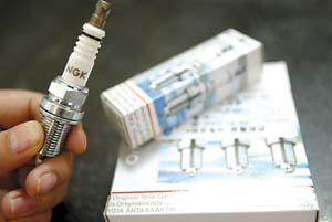 3、原廠配套的白金火花塞都印有大眾原廠標志。(張迪/攝) 在純合成油、半合成油、礦物油中又可以分為SA-SJ的等級,字母越靠后,質量等級越高。我們在買機油的時候經常會看到SAE、API、ACEA等字符,SAE是美國汽車工程師協會制定的黏度等級分類,API是美國石油協會制定質量性能等級分類,ACEA是歐洲汽車制造協會制定的發動機性能等級分類。SAE是評定機油黏度的,后面跟隨的數字5-10不等。數字越大機油越稠,反之越稀。例如SAE5w-40其中“w”表示winter(冬季),其前面的數字越小說明機油的黏度越稀,流動性越好,在冷啟動時對發動機的保護能力也就越好;“w”后面的數字則是機油耐高溫性的指標,數值越大說明機油在高溫下的保護性能越好。較高黏度的機油對運動系的阻力也相對較高,不但耗費功率、增加油耗,而且機油容易氧化、影響冷啟動的保護。5w-40的機油比15w-40的機油黏度更低,更容易在冷啟動的瞬間為發動機提供保護。 相關文章:寶來汽車問題多 細數缺點對癥下藥