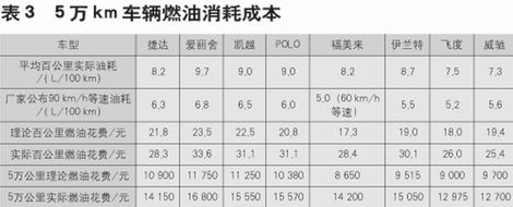 由統(tǒng)計(jì)數(shù)據(jù)可以明顯看出,在車輛的燃油消耗成本中,最省錢(qián)的當(dāng)屬2款1.5 L排量發(fā)動(dòng)機(jī)的日系車型,看來(lái)排量低確實(shí)省油,再加上日系車本來(lái)就以燃油經(jīng)濟(jì)性見(jiàn)長(zhǎng),威馳和飛度排在前兩位是當(dāng)之無(wú)愧的。其余6款1.6 L車型,由于發(fā)動(dòng)機(jī)的排量增大,燃油消耗上肯定會(huì)有所增加,即使是最省油的捷達(dá)與2款1.5 L車型相比也要多花費(fèi)1 000元以上。在這6款1.6 L排量的車型中,捷達(dá)以5萬(wàn)km燃油成本最低脫穎而出,與之不相上下的還有福美來(lái),這兩款車型構(gòu)成了第二梯隊(duì)。福美來(lái)仍然為日系車型,省油自不在話下,而身為德系車型的捷達(dá),在經(jīng)歷了十幾年的適應(yīng)性改進(jìn)之后,其燃油消耗率也達(dá)到了日系車的水平,是國(guó)產(chǎn)車型中身兼德國(guó)車性能穩(wěn)定與日系車燃油經(jīng)濟(jì)性的典范之一。 所以,單以燃油節(jié)省成本而論,威馳和飛度成為最省油的車型,而要以排量來(lái)論輸贏,捷達(dá)在同排量車型中也是最省油的。所以,這一回合的贏家不止一個(gè),包括威馳、飛度、捷達(dá)和福美來(lái)。