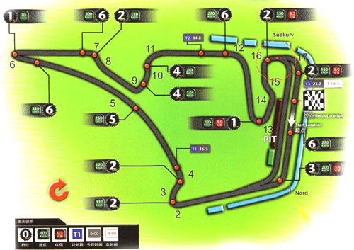 [賽道介紹] 第一屆德國GP是在1951年,當時是在舊紐倫堡(Nuburgring)賽車場所舉辦。之后曾于1959年在Avus賽車場舉行過一次,但1976年Niki Lauda在舊Nuburgring賽車場發生嚴重的意外后,過去曾是Mercedes- Benz車廠測試場地的霍根海姆(Hockenheim)賽道就替換Nuburgring賽車場成為F-1德國GP的舉辦地。