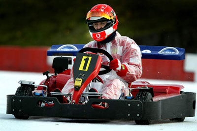 圖為舒馬赫在法蘭克福的冰場上駕駛卡丁車練習。