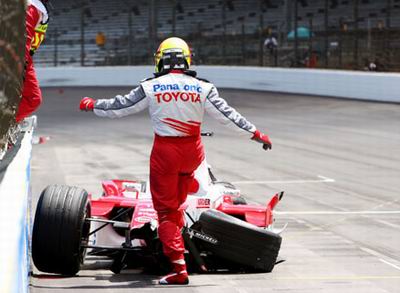 美國站練習(xí)賽撞車面目全非 小舒馬赫怒踹賽車
