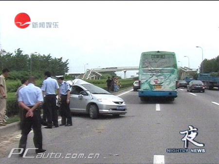 2005年7月20日,在上海浦東發生了一起惡性追尾事故,一輛機場大巴由于操作失誤竟然把一輛路上的廣州本田飛度三廂轎車撞凹了進去了,事故造成一死兩傷。坐在飛度后排的乘客不幸在車禍中喪生。