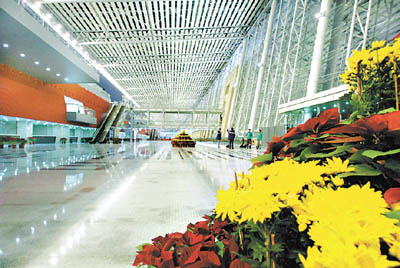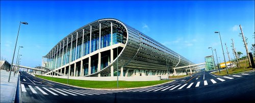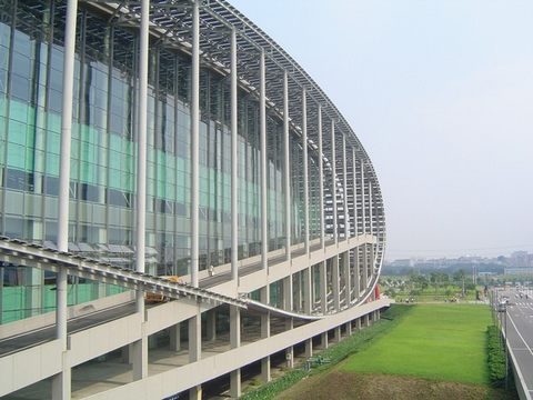 ①單體展館面積最大——39.5萬平方米②鋼橫架跨度世界最長——每個(gè)展廳的頂部由六個(gè)長達(dá)126.6米的大跨度預(yù)應(yīng)力張弦梁鋼管桁架支撐著,是世界上跨度最大的鋼橫架。