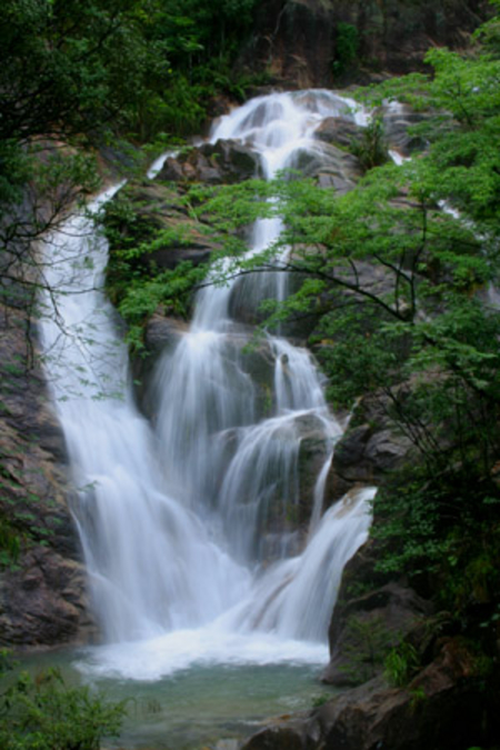 這是在白水寨風景名區里的又一條奇瀑,山上的水沿石壁流下,形成觀音的型態。