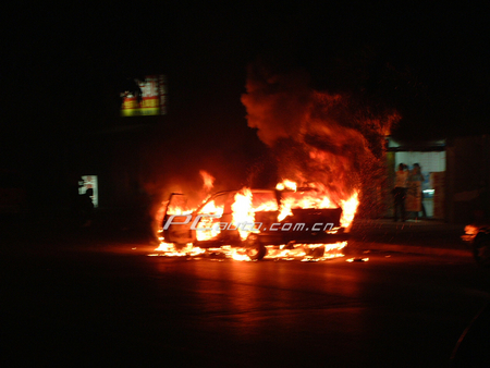 太平洋汽車網(PCauto)接網友黃先生報料稱:8月30日晚,他在經過北京朝陽區東葦路管莊路口時,遇到一輛桑塔納旅行版突然發生自燃,火苗升起2米多高,并不時發出輕微爆炸聲,觸目驚心。事故現場,吸引了很多路人,不少人都冒險想沖上去圍觀,但火勢過猛,難以靠近。筆者在現場冒險拍到了整個事件的全過程。隨后趕到的交警封路,直到消防人員到場,才撲滅了大火。可憐的桑塔納只剩下一副外殼……