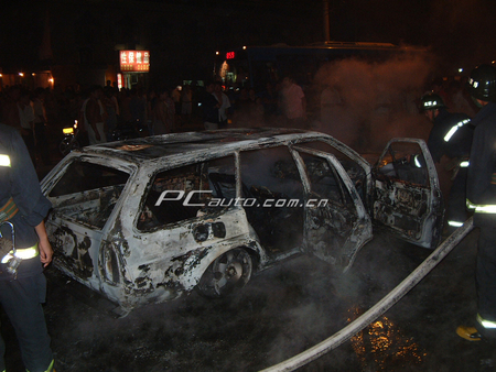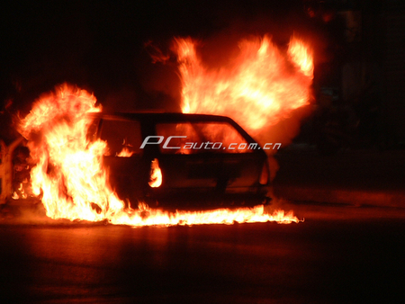 火焰升起2米高 北京網(wǎng)友實(shí)拍桑塔納自燃