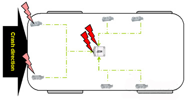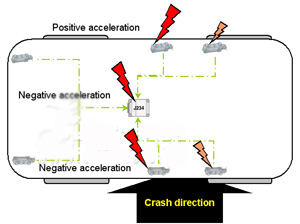下面是奧迪車的正面、側面碰撞防護圖: