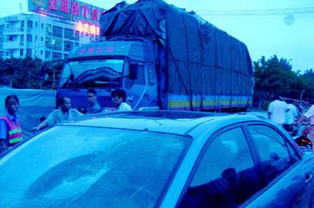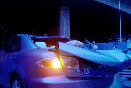 2006年端午節這天,本人在前海路南頭段遭遇嚴重車禍。肇事者為一異地貨車,由于載貨超過通行限高,導致路邊施工地的腳手架被掛倒。很不幸這時我駕馬兒剛好經過,重達數噸的鋼管架直壓車頂。(事發現場如圖)不過最值得慶幸的是,勇敢的馬兒用它的身軀換來了車上3人毫發未損。至此,我暗自發誓以后一定要盡心呵護我勇敢的馬兒,因為我覺得它已被賦予了生命!最后我也呼吁廣大的馬友們都能夠愛惜自己的馬兒!
