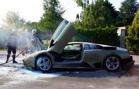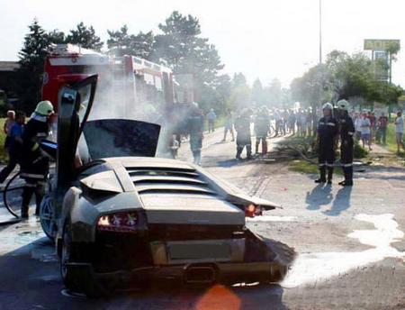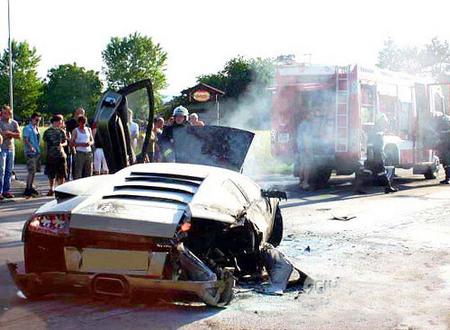 蘭博基尼Murcielago LP640是在今年3月的通用車展上發布的最新款,按照預定的時間表,它將在今年的9月時送達300位急切等待的購買者手中。在這些富有的消費者焦急等待著他們的終極怪獸時,第2輛LP640在公路上撞車燒毀了,這可真是個不幸的消息。這次事故發生在6月15號,地點是在澳大利亞的St. Andrae。事故的目擊者表示當時LP640很明顯失去了控制,撞到了路邊的樹木而后引發了大火。駕駛員受了嚴重的燒傷,被緊急送入了附近的醫院。