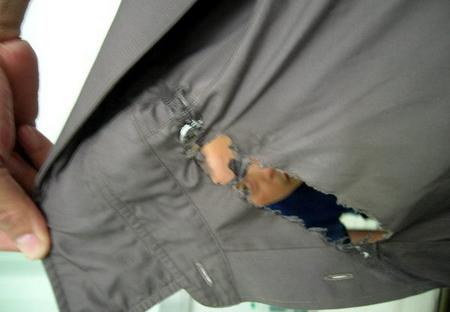 朋友的捷達與出租車捷達高速正面碰撞。去醫院看望朋友,朋友事故發生時穿在身上的一件襯衫引起的我的興趣。