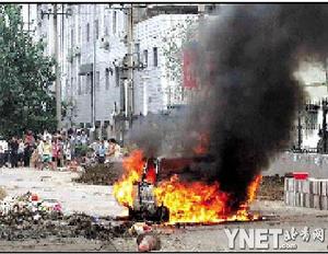 記者趕到現場時,看到一輛白色的夏利車前部正燃起熊熊大火,前風擋玻璃也已被燒裂,火紅的火焰不斷地從風擋玻璃處噴涌而出,滾滾濃煙升騰起來,沖向近在咫尺的居民樓。