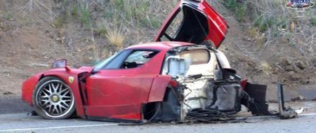 一臺價值100萬美元的Ferrari Enzo在加州Malibu,Pacific Coast Highway上與一臺奔馳邁克拉倫SLR彪車的時候失去控制,以200公里的速度撞向路邊,導致車身爆裂,分成2半,萬幸的是分裂后車頭一直在高速公路上滑行沒有沖出公路,所以車上2名成員一名輕傷,另外一個沒事兒。沒事兒的人是44歲的車主Stefan Erikssen。他擁有2部價值100萬美元的Ferrari Enzo。警察還在調查當時開車的是否是他還是承認肇事的德國籍男Dietrich,調查中,警察發現Stefan過去還涉及多起詐騙事件,如果這次調查發現當時駕車人是Stefan而不是Dietrich,等待他得很可能是冷酷的監獄。