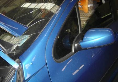 標致307慘遭大貨毒手摧殘 車主僥幸逃脫
