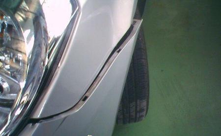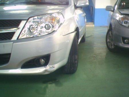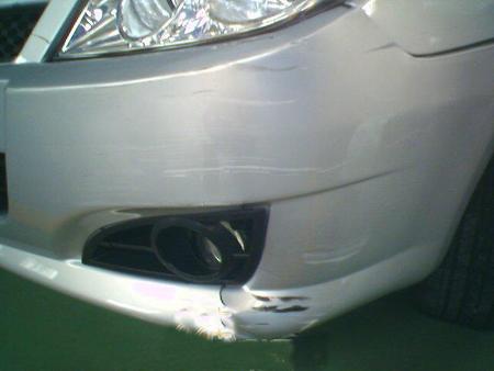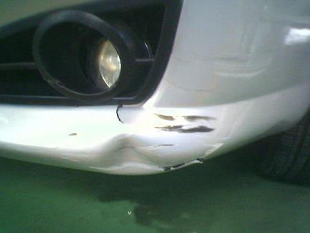 7月22日下午七點,本人駕駛剛做完首保的金剛經(jīng)過一十字路口準備左轉(zhuǎn)時與迎面飛速駛來的一輛摩托車發(fā)生碰撞,當時本人見此摩托車過十字路口時車速較快,約四五十碼左右,遂停車避讓,但此摩托車仍飛馳而來絲毫無減速的意思(事后才知道此人這個月剛領(lǐng)駕照,一新手!),結(jié)果摩托車避讓不及撞上金剛左側(cè)保險杠,摩托車側(cè)翻,車主跌落在地后居然跟沒事似的爬起來把車扶正,下車檢查金剛保險杠左側(cè)被撞裂,左霧燈罩脫落,左霧燈支架被撞歪。摩托車除護膝板的方向因震動所致有點偏以外,其它并無損傷。雙方人員基本無損傷,隨后報案,交警處理,找保險公司索賠……