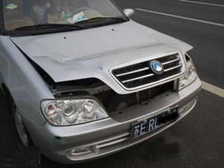 今天我開我的吉利豪情從上海去常州,上了滬寧高速不久,近陸家出口處,突然一下巨響,就看見擋風玻璃上砸下來一個東西,完全看不見路面,而且玻璃也出現大量的裂痕,當時人都傻了,因為車上還有我的妻子和剛9個月大的女兒。萬幸的是,當時前后都沒有車,左右的車也紛紛給我讓路,當我把車停在路邊時才發現是車子前面的引擎蓋翻上來砸到車前面。停下來檢查時發現,前面勾引擎蓋的勾子已經彎曲,我試了一下(請所有豪情的車主也試一下),這個部件竟然軟的可怕,可以任意彎曲。我現在剛回到家,老婆嚇得不行,明天一早我會到服務站去處理這件事。
