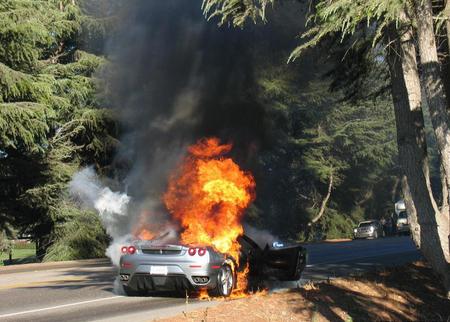 法拉利的火災(zāi)沒人見過吧?這是一輛發(fā)生自燃的法拉利F430,雖然火勢最終被撲滅,但是車也已經(jīng)變得慘不忍睹了。再好的車遇火總變灰燼!平時(shí)開車和保養(yǎng)的時(shí)候還是注意安全吧!
