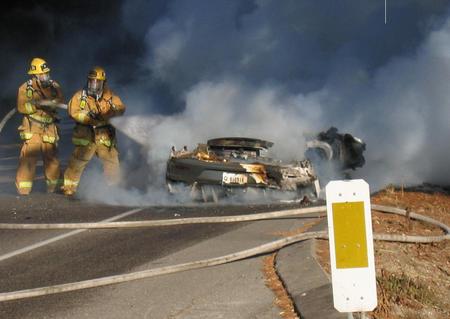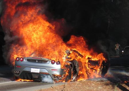 好車遇火總成灰!沖天烈焰紅燒法拉利F430