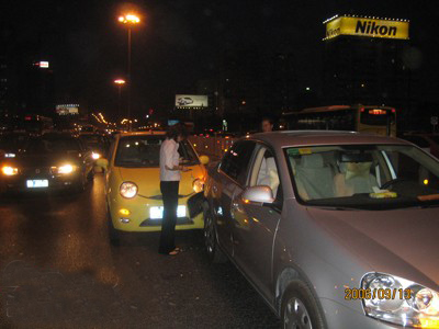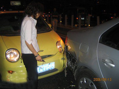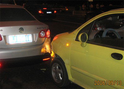 昨晚7點在三元橋被一個黃色QQ MM追尾,右后杠杠芯縮進去了,不過說實話,感覺速騰還算結實。