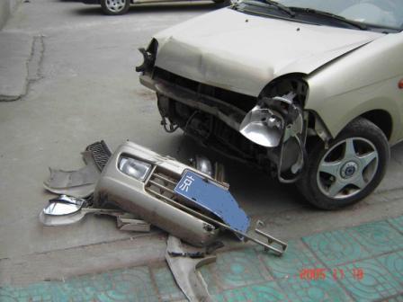 第二天,去4S店定損,Flyer的前杠全掉了,前倉內部的橫梁已變形,水箱漏了,前機蓋變形……定了總計RMB2500。我的右后杠有擦痕,右后輪輞邊上有一道痕跡,保險說可以只對右后杠表面噴漆即可。但我仔細觀察并用手壓后,發現右后杠上有一道裂紋,便要求將后杠全部處理了。結果我換后杠+輪輞,定損RMB1600(反下多少都是一次保險)。