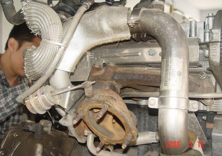 5月9日,廢了好大的勁,在各種關系下終于把寶來拖回了4S,今天拆檢正好帶著相機,照兩張讓大家看看。