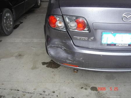 撞車篇:昨天晚上有點小雨,偶下班打完籃球回家,路上俺朋友剛考出駕駛證,為了小試身手,要我給他看車,朋友開口,馬上下車讓位,我自己也不是很喜歡開車,路上先是一個路口,有人推著3輪車,偶朋友就這樣沖過去,還好我叫了一下,暈,偶朋友加速打方向盤,我狂暈,本來就20碼的速度 可以踩剎車的,還好總算可以當做沒事,反正也沒有出事,早開回家,好不容易到了偶家小區了,因為還不很晚,還有好幾個車位,我選了一個比較簡單的,旁邊有一輛SATANA,還有一個馬6(受害者),應該說這2個車中間是2個車位左右,我朋友就在那里停車,P車,開回開了好幾回,都沒有停好,看他還很有自信的,說前面位置還有很大,我其實早就叫可以了,不過他還是慢慢的往前面開,暈,沒想到要碰見了,我馬上喊剎車,估計他自己也緊張了,一腳油門下去,頂在馬6的屁股,把那馬6一只往前面沖去,頭又撞在馬6前面的別克君威上面,這下就成下面這個樣子了!