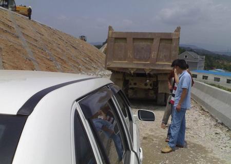 前天上午由于要出差,和往常一樣,坐單位里司機開的公車去,一輛桑塔納3000。一路上跑了好幾個小時,眼看就要到目的地了,由于在修高速公路,路上是單行線。車子停在了一輛大翻斗車的后面,沒到半分鐘,突然發現前面的翻斗車竟然在倒車,司機的第一反映就是長按喇叭,離我們大約五米左右的翻斗車在退了兩、三米時停了一下,我們不由的都松了一口氣,以為這下沒事了。沒想到還沒過三秒鐘,翻斗車繼續后退,我們只有眼睜睜地看著他撞了上來,在劇烈的震動中,我們整輛車子在原地被撞的向后退了大約五十公分。