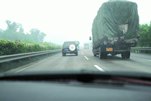 夜間行車也要特別注意,貨車常因保養不到位而車況很差,燈光不齊或者是冒黑煙是常有的事情。所以夜晚在高速行駛的貨車的是尾燈很多燈光微弱,甚者看不到尾燈。再加上排出的廢氣黑煙滾滾,更是會嚴重影響視線。容易讓人產生下霧的錯覺。所以晚上行車時候,最好選擇在超車道上行駛。遇到突如其來的濃煙時應該立刻減速,以避免追尾的危險。說到這里,筆者有一次親身經歷,當時也是夜晚在高速公路上行車,前方一片漆黑,根本看不出有任何狀況,突然前面飄來了滾滾濃煙,能見度頓時下降。當意識到可能是前面有貨車冒黑煙的時候,貨車突然出現在前面幾十米處,立刻踩下剎車,及時避免了追尾的事故。其實這個過程就只有幾秒的時間,可見第一時間作出判斷是多么的重要,所以在夜間行駛一定要保持頭腦冷靜,精神集中。