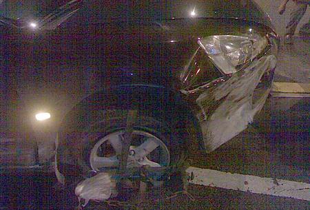 內環路有一段是分差小道,落到下面的馬路上,當時我的車速是160,從主干道變線到下斜波的小道,小道只是1車道行駛,當我感覺車速太快了;需要踩剎車的時候……踩剎車,車子搶肽,撞左邊石護欄,反彈再撞右邊石護欄,如事者反彈了4~5次,就像玩"彈珠臺"一樣,完全失控! 而這一切都只是發生在5秒鐘之內!