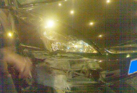 前飾條已經變形,估計引擎蓋也有些變形了