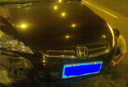 終于,車子下了引橋,打燈靠邊!腦袋一篇空白…忽然間聽到后面有哭的聲音!原來坐在后排的2個朋友其中一個女孩子撞傷了鼻子。另外一個男孩子沒事。他把她抱到馬路邊止血。