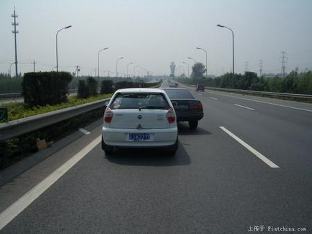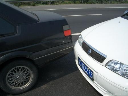 親密接觸的樣子。我車前杠右側(cè)和葉子板接縫出,有點突起,右車燈罩擠碎了。他車后保險杠裂了1大塊,總的來說Palio夠結(jié)實。