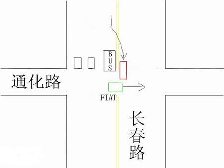 但是那個大巴車阻擋了我的視線,也阻擋了對方肇事車的視線。我們根本就沒有看到對方。就在我加速的時候,我還問了老婆一句:有沒有禁行標志,老婆說:沒看到。因為如果有禁行,我就得趕緊改成右轉向了。老婆說沒有之后,我就開始放心走了。