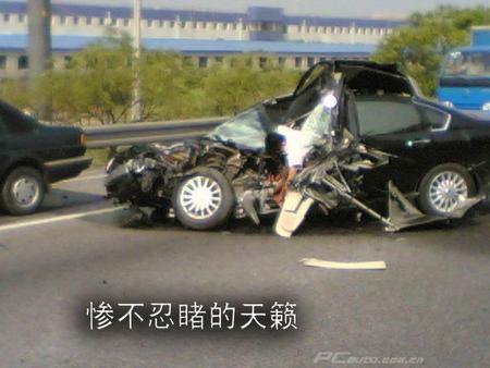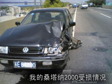 2005年9月16日(禮拜五)上午,中秋節(jié)的前兩天,我一人駕車從常熟經(jīng)沿江高速趕往上海,后備箱里裝了幾箱月餅和水果。因業(yè)務(wù)關(guān)系,這段路我每月要走數(shù)次。全程路況很熟。從常熟通江路入口上沿江高速經(jīng)滬嘉瀏高速至桃浦路出口,共80公里不到。 8點(diǎn)多鐘我駕著桑2000上了高速,當(dāng)天天氣很好,可謂秋高氣爽,我這部桑車購于2000年,我的駕齡也是從購車那年開始。此時(shí)桑2000里程已達(dá)20萬公里。在此以前的一年里,該車是大病沒有,小病不斷,易損件幾乎換了一遍。車的門窗經(jīng)過數(shù)次拆卸后,密封性大降,超過100公里/h后噪音特大,所以很少能超過100公里,上沿江高速后趕覺噪聲比平時(shí)大些,經(jīng)觀察發(fā)現(xiàn)引擎蓋似乎沒蓋牢,估計(jì)是前天晚上洗車加風(fēng)擋水時(shí)沒蓋牢所致。可又不敢停車,只好60碼左右捱到太倉沙溪服務(wù)區(qū)才把引擎蓋重新蓋好。出了服務(wù)區(qū),一切正常,或許是中秋節(jié)快到的原因,一路車都很少,不久進(jìn)入了上海段的滬嘉瀏高速。領(lǐng)卡后不久,為追回前段路浪費(fèi)的時(shí)間,我的車速也比平時(shí)快了些許。此段路為雙車道即超車道、行車道和緊急停車帶。9點(diǎn)25分左右離南翔出口大約2公里,我正以時(shí)速110左右在行車道行駛,此時(shí)左前方超車道上一部黑色天籟速度慢了下來,因該部車子超我車時(shí)速度很快,幾分鐘前已把我甩得很遠(yuǎn)。不知為何現(xiàn)在速度卻慢了下來,該車離我越來越近,感覺一會(huì)就可以超過它了。當(dāng)我車和天籟相距約五六十米時(shí),意外發(fā)生了,那一瞬間象無聲電影一樣烙在了我的腦海里:天籟忽然和前面一部似乎忽然出現(xiàn)的車子撞在一起,黑色的天籟一下變的又高又大,同時(shí)像堵墻似的橫在了我前面的行車道上,,霎時(shí)我意識(shí)到天籟出事了,我也很危險(xiǎn)。相撞已不可避免。下意識(shí)的緊握方向盤右打,剎車也不知踩沒踩。隨著一陣劇烈顫動(dòng),我身體急向前沖,而安全帶又牢牢地把我向后拉,只感覺肩膀巨痛。奇跡發(fā)生了,我竟沖了過去。但護(hù)欄立即出現(xiàn)在眼前,我向左急回方向并沿著緊急停車帶向前滑行,等確認(rèn)不會(huì)有后車追尾時(shí),我才將車停在了路邊。感覺除了左肩膀安全帶處有些疼痛外其他一切正常,推推車門,打不開。引擎蓋也上蹺起來。我伸手試試右車門。還正常。正正心神后從副駕門出來,一邊用手機(jī)撥打110報(bào)警,此時(shí)為9點(diǎn)25分,先大致察看以下自己車子情況。
