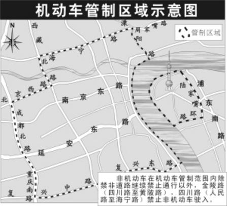 彩燈開放區域允許公交線路車通行的路段為:四川路(海寧路—北京路);北京路(四川路—西藏路);西藏路(北京路—復興路)。允許非機動車橫穿的路口為:南京路江西路、淮海路嵩山路、四川路天潼路。