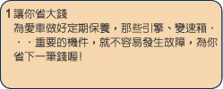 如果你想你的愛車保證你可以在這樣長途的行駛中不發(fā)生什么問題,平時(shí)的保養(yǎng)是很重要的,這種東西臨時(shí)抱佛腳是沒有用的,什么時(shí)間該做什么保養(yǎng),可以查看《汽車保養(yǎng)要牢記的幾個(gè)數(shù)字 什么時(shí)候該保養(yǎng)什么!》一文。