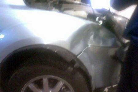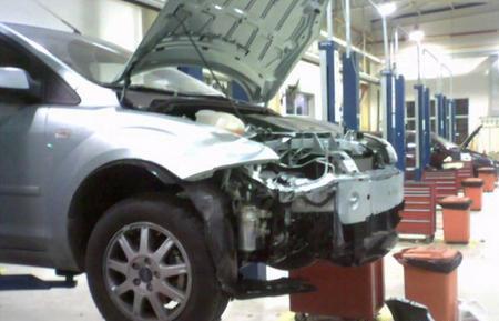 8日下午,約了定險和對方車主,到了鹿鼎,驗過各種手續,開始定,第一項,就定不了。鹿鼎的師傅手扶著我的機器蓋情深的嘆息道:“哎,沒修過,不好說啊……”接著,升起來一看:“喲,這是什么玩藝?XXX,你來,你培訓過,你來看看。”結論——助力轉向泵,定不了啊,不知道什么價錢啊。簡單看了幾樣,助力泵、大燈、前保險杠、輪轂,然后一位同志去打電話咨詢廠家去了,我們幾個聊天,我才知道之前福克斯都是輕傷,來了修修補補的就回前線了,我是第一個烈士。(昨天,問我買車的福瑞4S,也是這么說的。定損員是管城區的,也沒遇見過,要不一項也定不了呢)。我一陣激動,第一光榮啊。小時候念書開始就不知道第一啥滋味,也不知道有人給我準備點獎品沒有。正噴著,問價那位回來了,第一句把保險公司的嚇一跳:“助力泵7800!”4項加起來過萬了。