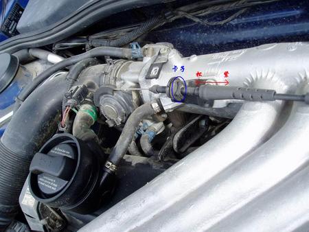 看圖中藍色的部分,卡子和拉線外套的卡位將決定“匡量” 也就是油門踏板的高度。把卡子拔下, 將護套向右(緊)方向移然后卡住,會升高油門踏板位置, 反之,則降低。根據(jù)自己的感覺確定卡在哪。
