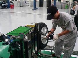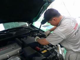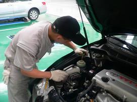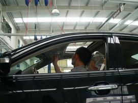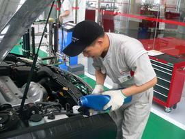 原來在主維修人員坐入駕駛位檢查車內設備時候,副維修人員正在清理后尾箱,再將備胎拿出,檢查備胎的氣壓時候正常。在檢查完后備胎之后,副維修人員開始檢查右邊的前后車門,其檢查的項目和上面的一樣,但是他只負責右邊部分,分工十分的明確。再回過頭來,主維修人員此時又做什么去了呢?原來他已經打開了引擎蓋,對發動機進行檢查,項目包括雨刮液是否缺少;蓄電池的安裝是否牢固;而空氣濾清器也需要拆卸下來,將其中的濾網清理;機油是否清澈(5000公里不需要換機油,10000公里才需要換機油),制動液是否有泄漏等等······