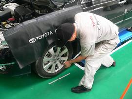 用風炮將輪胎安裝上去后,主維修人員還將用扭力桿調節到一定的參數,將四個輪胎加固,而此時的副維修人員也沒有閑著,復檢發動機內部是否存在問題,就怕某些工序被遺忘。將以上程序做完后,凱美瑞5000公里的保養工作算是正式完成。如此快速有序的工作程序筆者還是第一次見到,有條不紊,快而不亂,每個人都清楚自己的工作和順序,不會遺忘任何一個細節。