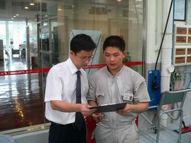 在確認了沒有問題之后,主維修人員找到維修主管簽字確認,而整個過程不到30分鐘,客戶不必等待過長的時間。之后凱美瑞由主維修人員將車輛開到清洗區,將車主的愛車做一個全面的清唷!跋垂琛鋇目廊鶇聳蔽諍詵⒘粒腿縲魯迪碌匾話悖奕嗽痹俳刪壞某盜拘惺壞嬌突У背跬3檔奈恢茫涂頭嗽比啡銜藜鍬肌H啡廈揮形侍庵螅頭嗽繃黨抵鰨貿抵魅啡锨┳趾螅翟砍綴托惺恢そ換垢突В庋?000公里項目算是圓滿完成,筆者計算了一下時間,大約在一個小時左右。