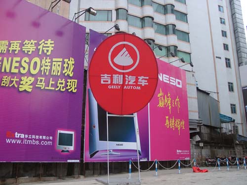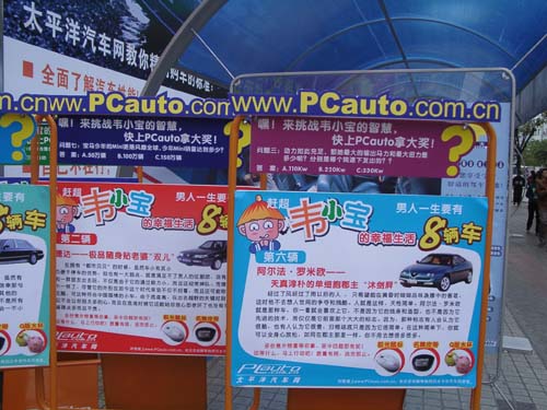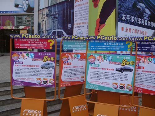 為配合本次活動,PCauto將全程向你報告本活動,喜歡的朋友可以繼續留意,現在我向大家簡單介紹一下這次活動的一些基本情況:活動地點還是不變廣州太平洋電腦城二期前廣場;時間是今明兩天的早上十點到下午五點半;展車是吉利的三款當家花旦,美日、豪情300及優利歐,其中最引人注目的是剛登陸廣州沒多久的豪情300;最后當然是非常豐厚的獎品。