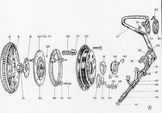 由于汽車在行駛過程中,需經常保持動力傳遞,而中斷傳動只是暫時的需要,因此汽車離合器的主動部分和從動部分是經常處于接合狀態的。摩擦副采用彈簧壓緊裝置即是為了適應這一要求。當希望離合器分離時,只要踩下離合器操縱機構中的踏板,套在從動盤轂的環槽中的撥叉便推動從動盤克服壓緊彈簧的壓力向松開的方向移動,而與飛輪分離,摩擦力消失,從而中斷了動力的傳遞。