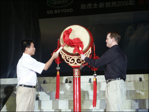 中國北京,2005年8月30日,北京日壇,在恢弘的皇家氣勢映襯下,路虎中國攜手北京惠通陸華汽車銷售有限公司隆重推出了路虎最新車型:路虎攬勝運動版及全新攬勝06款。這是路虎在2個月內又一次將其世界頂級的全新產品帶入中國,路虎再一次將中國公眾的目光吸引到了豪華車領域。