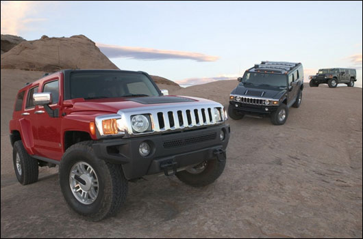 由左至右:悍馬H3、悍馬H2、悍馬H1