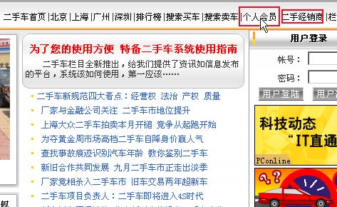 首先登陸二手車網(wǎng)站,網(wǎng)址是:http://www.yuyouke.com/usedcar/,頁面上的會員注冊分為:個人會員和二手經(jīng)銷商兩類,下面以個人會員注冊為例給以介紹:
