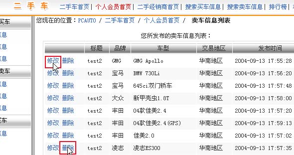 確定后你的信息就已經(jīng)發(fā)出去了,你可以在一個界面上看到你刊登的信息,你可以對你刊登的信息進(jìn)行修改和刪除,個人僅可對自己刊登的信息進(jìn)行操作。如下圖所示: