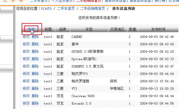 如圖一,點(diǎn)擊經(jīng)銷商買車?yán)锏目琴u車信息,進(jìn)入以下界面,點(diǎn)擊描紅部分的那個"發(fā)布",你就可以發(fā)布信息了,