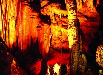 深入洞中,還有很多鬼斧神工的奇觀,白鶴、蒼鷹、狗熊等栩栩如生。記得有一處鐘乳林立,從下面一攤淺水看其倒影,竟深不見底,而且諸多鐘乳的倒影在水中看起來猶如夏日盛開的蓮花。