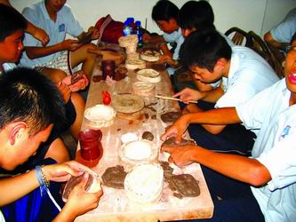 在螺巖山后山,還有“紫砂文化區”,是一個可同時接待500人玩陶土的陶吧,可讓游客過把制陶癮。